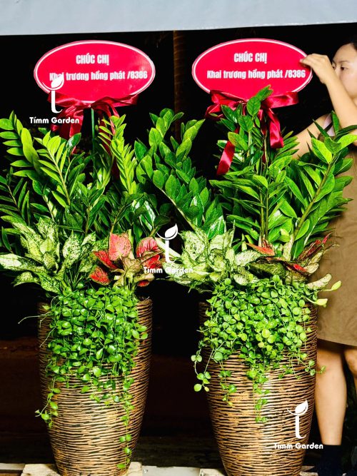 • Giá đã bao gồm đầy đủ: Cây + chậu + phối kết hoàn chỉnh + sỏi trang trí + phân đất + bảng chúc mừng + ruy băng + dĩa lót
